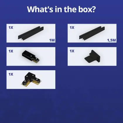 | Fabrikantnaam | Complete L shaped 1-Phase Track Set Black - 1 x 1,5 meter incl. End Cap, Power Connector and L -Con | |