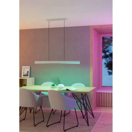 De kleur van het armatuur kan een grote rol spelen in het interieur van een ruimte. Zo kun je kiezen voor een neutraal wit design of juist voor een donkere kleur, zoals zwart of zilver, om de lichtbron op te laten vallen of er zelfs een decoratie op zich van te maken.