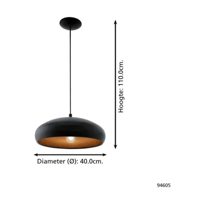 Beschrijving Eglo Hanglamp Moga 1 Staal Zwart Koper | IP20 - Geschikt voor 1x E27