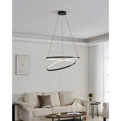 Beschrijving Eglo Pendelarmatuur Ruotale Staal Zwart 42W 5000lm - 830 Warm Wit