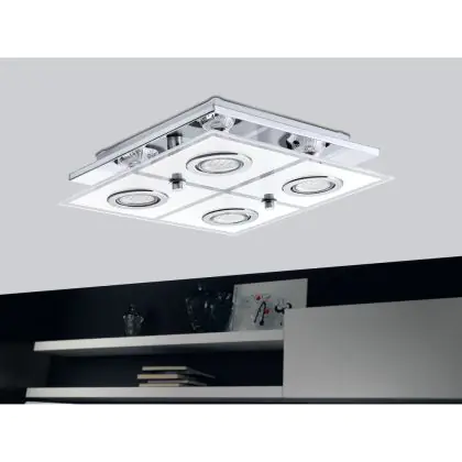 Beschrijving Eglo Plafondlamp Cabo Roestvrij Staal Chroom 4x2.8W 4x250lm - 830 Warm Wit | IP20 - Incl. 4x GU10