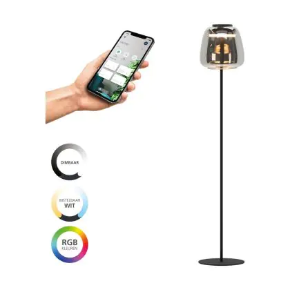 Eglo Vloerlamp Alfero-Z Staal Zwart 15.5W 2000lm - 827-865 Afstembaar Wit + RGB | IP20 - Zigbee Dimbaar