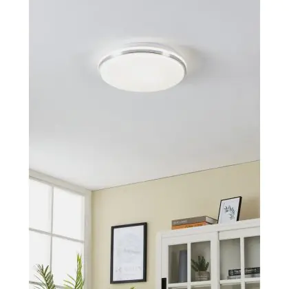Beschrijving Eglo Wand en Plafondlamp Pinetto Staal Wit 15.6W 1900lm - 840 Koel Wit | IP44