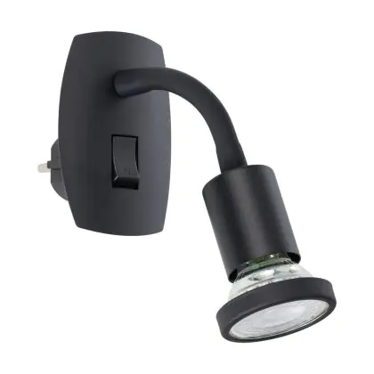 Beschrijving Eglo Wandlamp Parrini Lamp met Stekker Zwart 4.5W 345lm - 830 Warm Wit | IP20 - Incl. 1x GU10