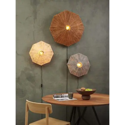 Beschrijving Good&Mojo Wandlamp Panama Raffia Bruin | Geschikt voor 1x E27