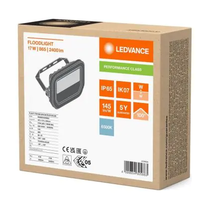 Beschrijving Ledvance LED Breedstraler Aluminium Zwart 17W 2400lm 100D - 865 Daglicht | IP66 - Symmetrisch