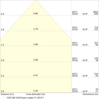De gradenbundel geeft informatie over hoe breed het licht wordt uitgestraald. Dit zit tussen de 0 en 360 graden (D). Hoe kleiner de hoek, hoe specifieker de lichtbundel is. Over het algemeen is een smalle gradenbundel perfect voor sfeer- of accentverlichting, terwijl een brede gradenbundel ideaal is om grote oppervlaktes te verlichten.