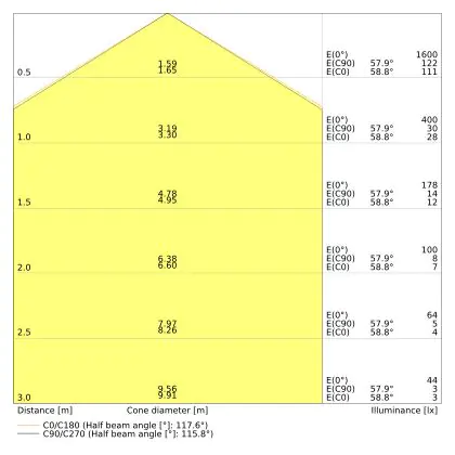 ![]() De kleurcode is een combinatie van de kleurweergave (CRI) en lichtkleur (Kelvin). Het eerste getal is de kleurweergave (1 = zeer slechte kleurweergave, 9 = maximale kleurechtheid). Het tweede en derde cijfer betreft de lichtkleur. Een lamp met kleurcode 830 heeft bijvoorbeeld een goede kleurweergave en straalt een warm wit licht uit (3000K), waar een lamp met de kleurcode 940 een uitstekende CRI heeft en een koel wit licht (4000K) uitstraalt. |