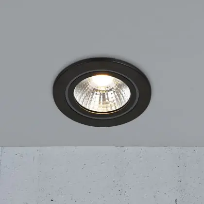 Deze zwarte inbouwspot met 3-Step Moodmaker dimmer maakt het mogelijk om het 3000K warm wit licht op drie standen te laten branden: