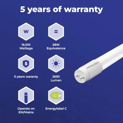 Beschrijving Noxion LED Buis T8 Avant Extreme (EM/Mains) High Output 16.5W 2650lm - 830 Warm Wit | 150cm - Vervangt 58W