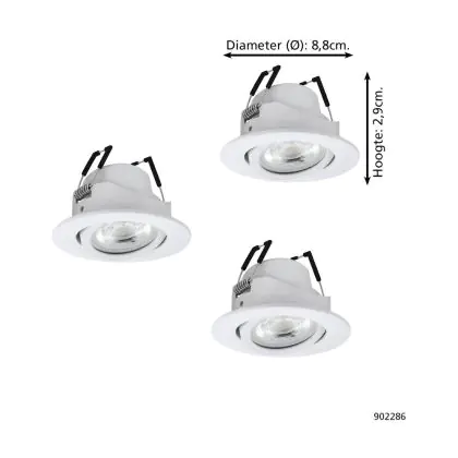 Beschrijving Voordeelpak 3x Eglo LED Spot Saliceto-Z Aluminium Wit 4.7W 440lm - 827-865 Afstembaar Wit + RGB | 88mm - Zaagmaat 68mm - IP20 - Zigbee Dimbaar